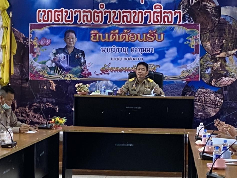 นายอำเภอส่องดาว นายวิชาญ ดาทุมมา มอบนโยบายให้หัวหน้าส่วนราชการ ตำบลท่าศิลา ณ เทศบาลตำบลท่าศิลา อำเภอส่องดาว จังหวัดสกลนคร [7 มีนาคม 2565]
